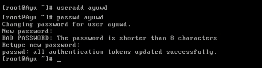 passwd nama-user [Maksudnya password untuk nama-user] --Lalu masukan password--